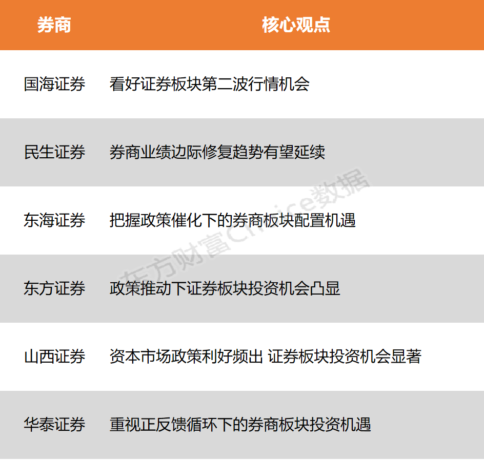 东方证券:政策推动下证券板块投资机会凸显