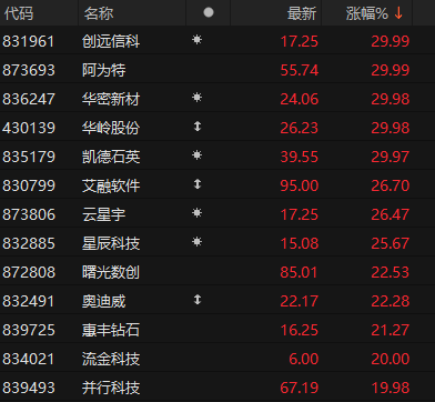 北证50指数成分股早盘涨幅排名