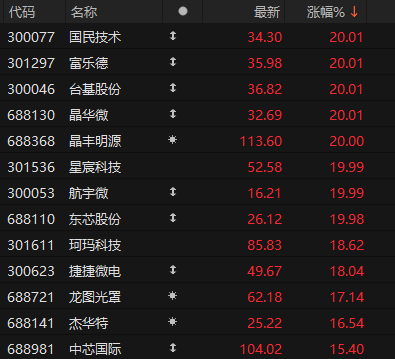 半导体板块早盘涨幅排名