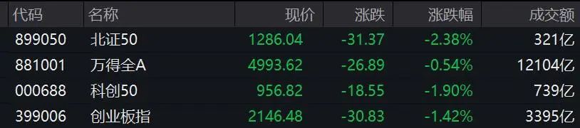 今日早盘,a股继续小幅震荡调整,截至午间收盘,创业板指、科创50、上证50、沪深300等指数均跌超1%。两市成交略有萎缩,但半日成交仍超过万亿元。