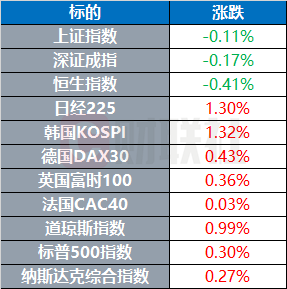中概股方面,纳斯达克中国金龙指数涨0.44%。爱奇艺涨6.67%,好未来涨3.91%,阿里巴巴涨2.95%;蔚来跌3.51%,贝壳跌5.15%。