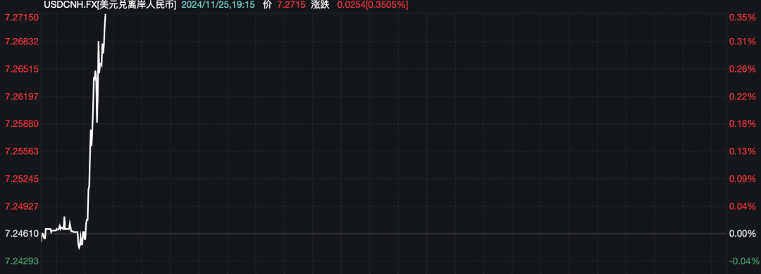 离岸人民币兑美元也短线走低,跌超200个基点。