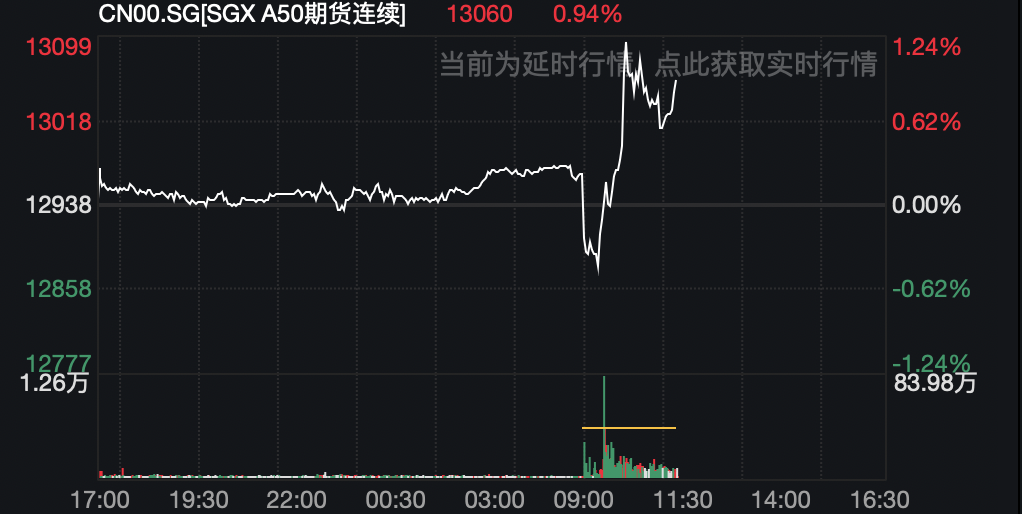 值得一提的是,a50指数期货曾直线拉升,带动两市股指盘中迎来强劲反弹,沪指盘中一度冲高涨超0.6%。