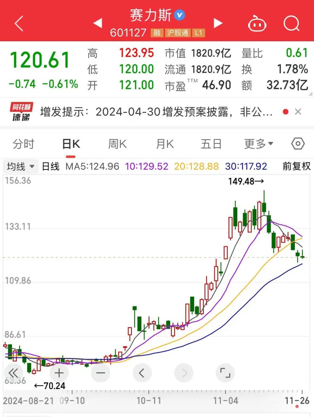 截至11月26日,公司自9月24日以来股价涨幅超50%,最新市值超过1800亿元,收购龙盛新能源后,公司总规模有望站上新台阶。