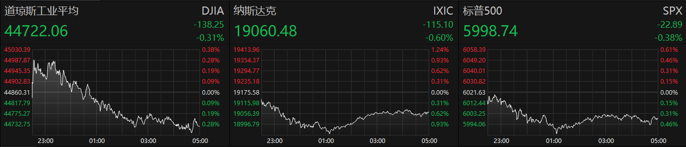 ►美股周三收跌。英伟达与戴尔下跌令科技股承压。标普500指数结束此前连续7个交易日的上涨。美国三季度实际gdp增幅较二季度放缓,10月pce通胀指标符合市场预期。截至收盘,道琼斯指数跌0.31%,纳斯达克指数跌0.60%,标普500指数跌0.38%。热门中概股集体上涨,纳斯达克中国金龙指数收涨2.81%。中国自动驾驶公司小马智行正式登陆纳斯达克,上市首日收跌7.69%。