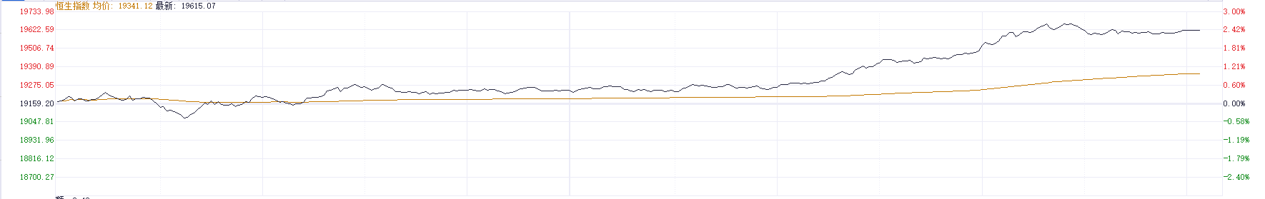今日港股市场一改颓势大幅反弹。截至收盘,恒生指数涨2.32%,报收19603.13点;科技指数涨3.61%,报收4374.44点;国企指数涨2.57%,报收7027.40点。